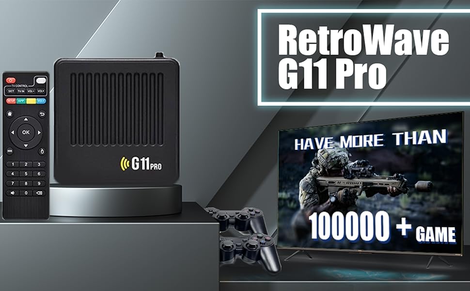 All8bit G11 Pro 100000 Games, Retro Wave G11 Pro Game Box, 4k HD Wireless Retro Game Consoles with 2 Wireless Dual 2.4G Controllers, No Downloads Plug & Play, Retro TV Games Console (64G)