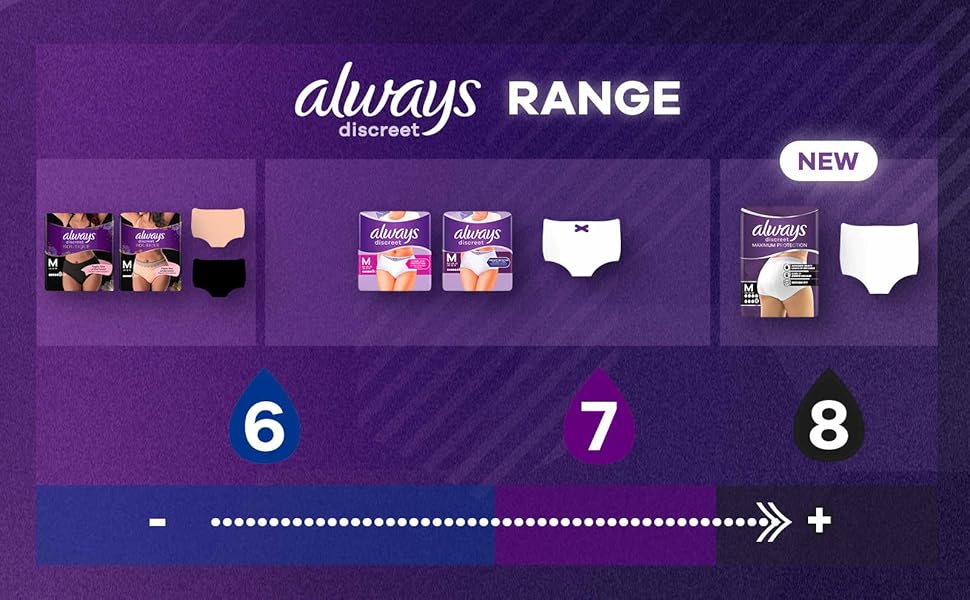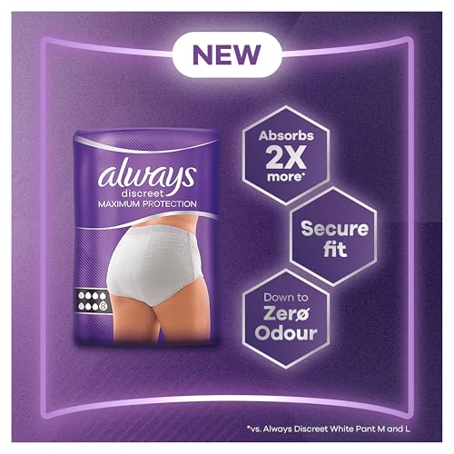 Always Discreet Incontinence Pant Maximum Protection 8 Drops, Size M, 4×12 Counts, with Odour Neutralising Technology