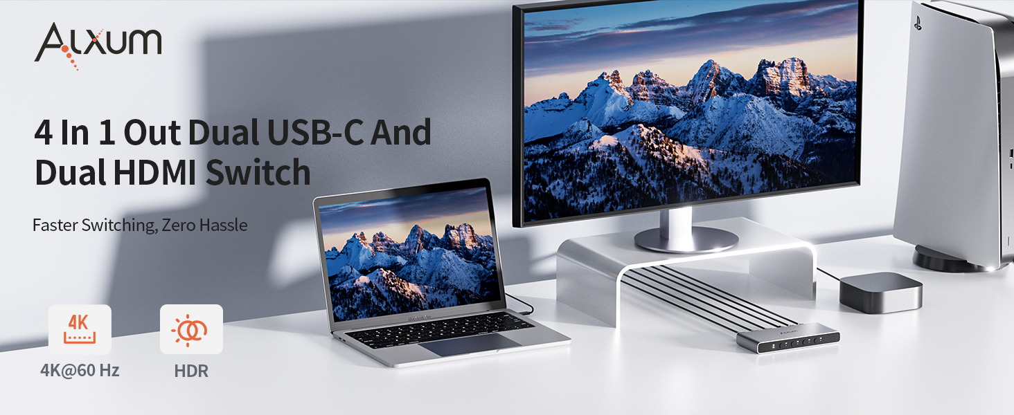 Alxum 4 IN 1 OUT HDMI SWITCHES-Declutter Your Desk, Master Your Workflow