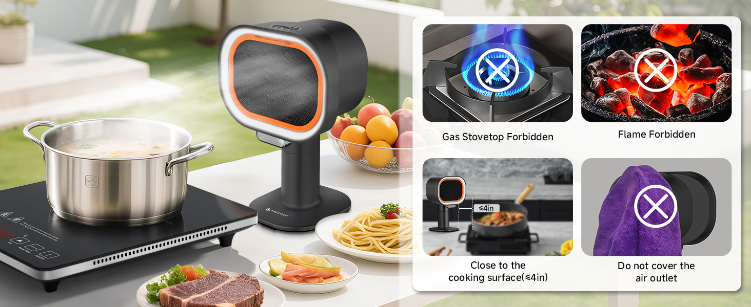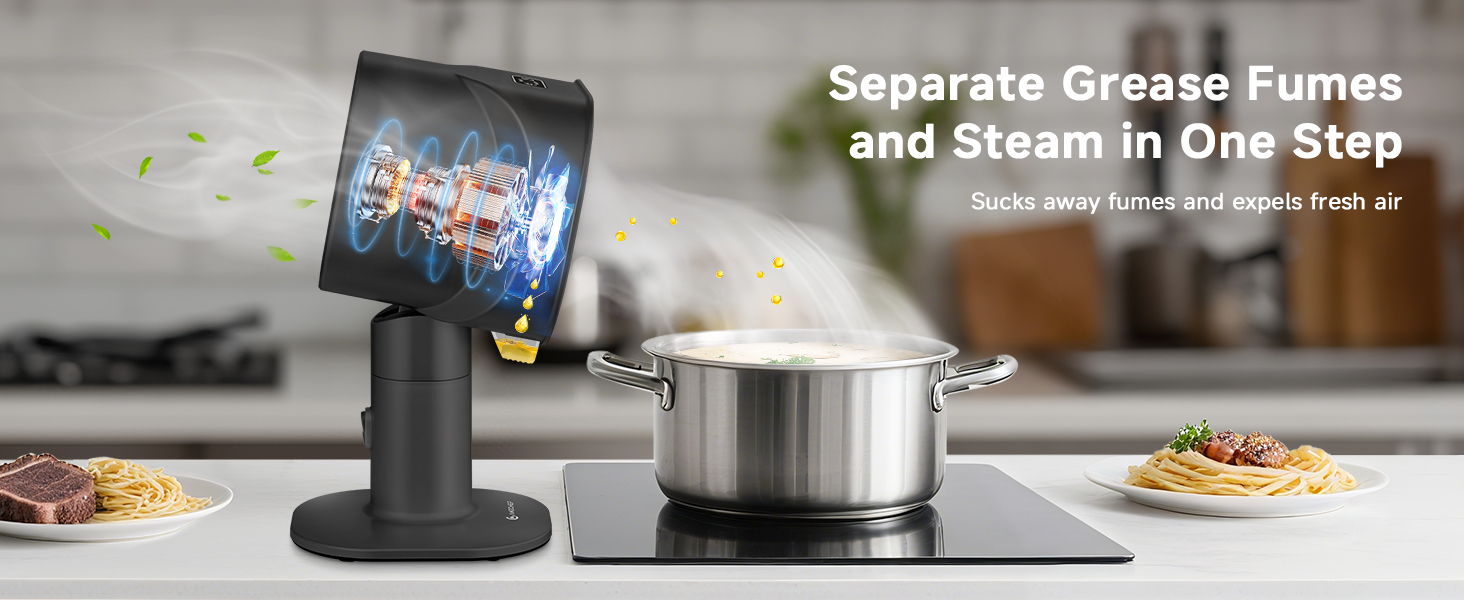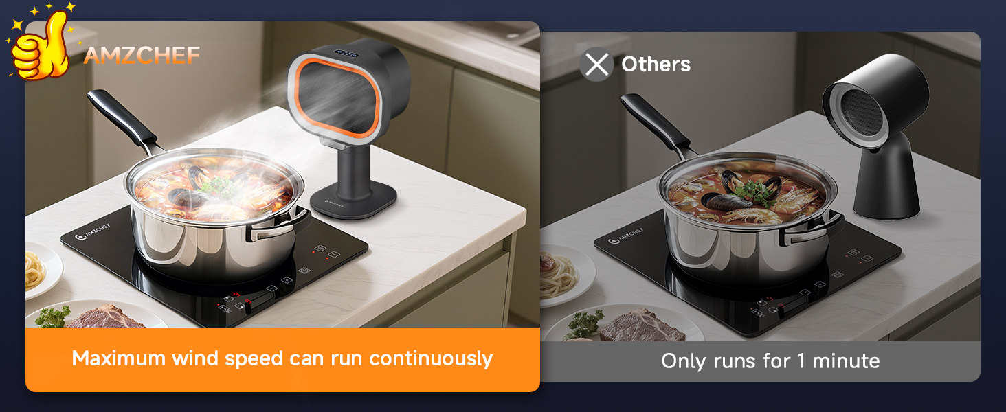 - Flexible height and tilt: AMZCHEF portable cooker hood supports a height extension of 72 mm and a tilt range of +40° (-20° to +20°). It is suitable for soup pots/cooking racks with a depth of less than 25 cm and meets the height requirements of most kitchen appliances. So it can effectively absorb most of the vapours generated during cooking.