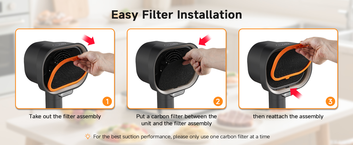 - Four stage filter system: AMZCHEF portable extractor hood has a four-stage filter system. The aluminium mesh effectively condenses grease while the filter cotton removes odours, achieving true smoke separation and creating a healthier cooking environment.