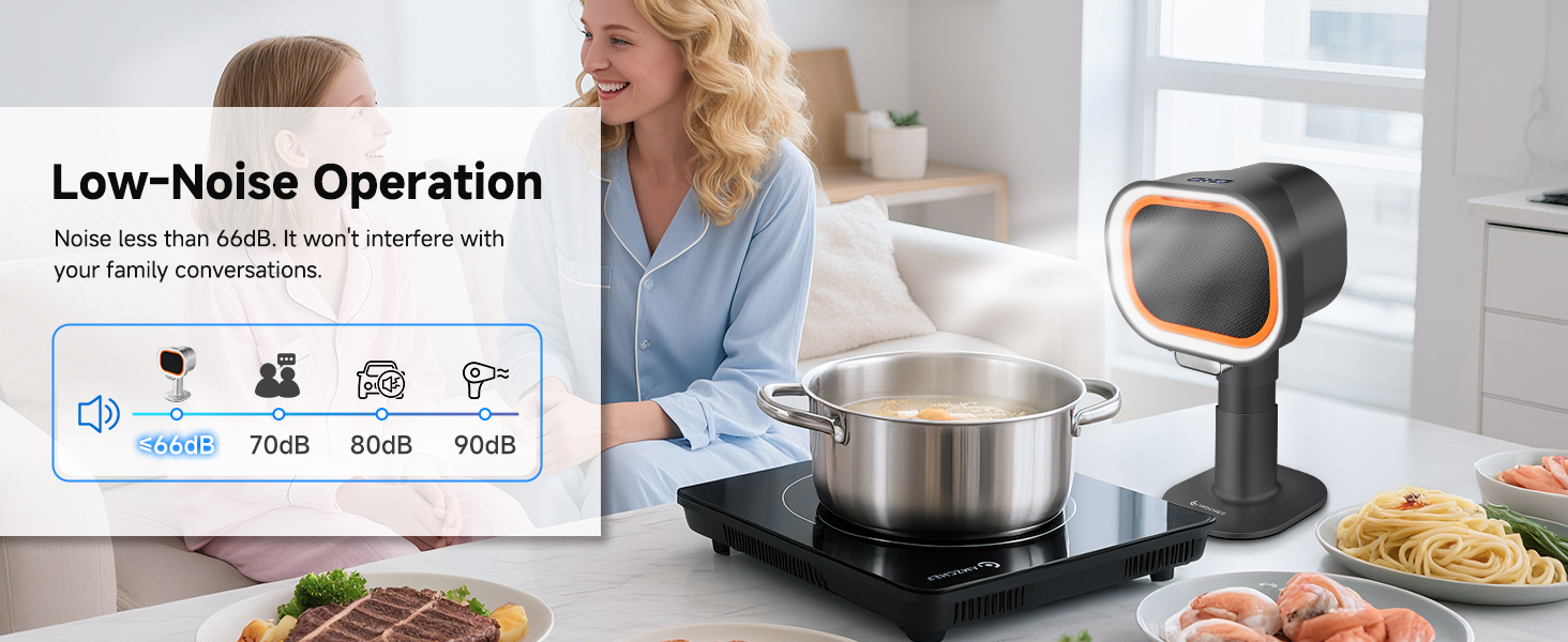 - Low noise and easy to clean: AMZCHEF mobile extractor works at less than 66 dB and thus ensures a quiet and pleasant dining atmosphere. The filter is machine washable and is easy to assemble and disassemble. The smooth, seamless touch screen design of the buttons is easy to wipe and clean and responds quickly.