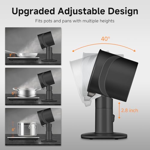 - Flexible height and tilt: AMZCHEF portable cooker hood supports a height extension of 72 mm and a tilt range of +40° (-20° to +20°). It is suitable for soup pots/cooking racks with a depth of less than 25 cm and meets the height requirements of most kitchen appliances. So it can effectively absorb most of the vapours generated during cooking.