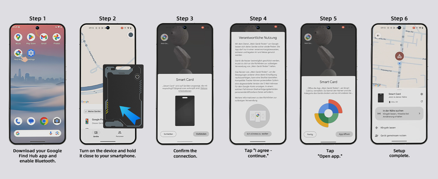 - Note: Compatible only with Google Android systems, not with Apple iOS systems or Huawei phones. This product is an anti-loss device. It transmits Find Hub network data to your mobile device via Bluetooth. It does not provide real-time location services. If a location report error occurs, you can update your location in the Find Hub app center.