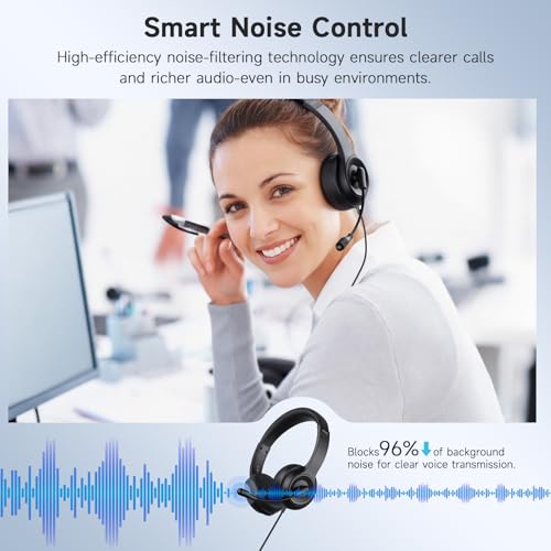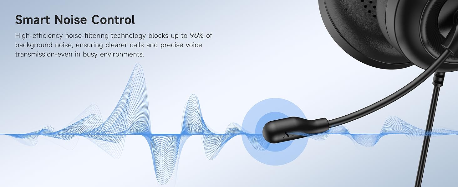 [Clear Calls with Noise-Cancelling Mic] – The 270° adjustable boom mic captures your voice with precision while filtering out noise, making conversations clearer in busy offices and online meetings. This reliable headset with microphone for pc delivers crisp voice quality for Teams, Zoom, and customer support calls, making it a great computer headset with microphone for daily communication