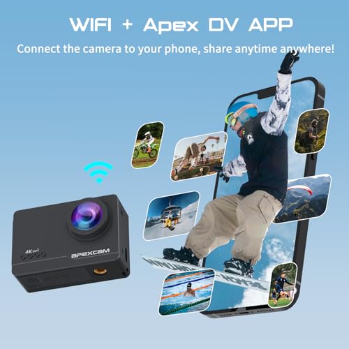 - 【WIFI and 2.4G Remote Control】Just download App (Apex DV) on your phone or tablet and connect with this 4k action camera.By connecting WiFi with 2.4G remote remote shooting, the remote control range is up to 15 meters. Note:The remote is not waterproof.