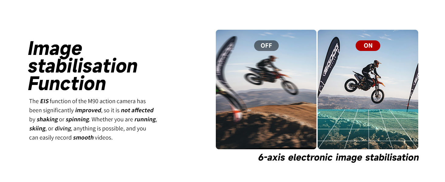 The M90 action camera's pre-recording function captures 12 seconds of footage prior to formal recording. When you press the record button, this feature ensures you needn't worry about missing those precious moments you wish to capture.