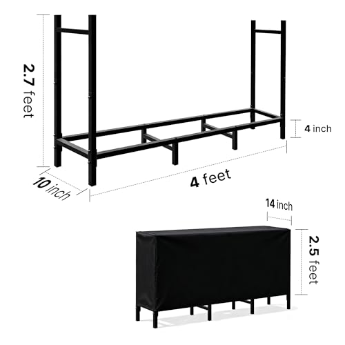ARIFARO Firewood Log Rack With Waterproof Cover Indoor/Outdoor for Fireplace, Maximum Dimension 122 x 26 x 82 cm, Metal Heavy Duty Firewood Pile Storage Racks for Patio, Deck, Black