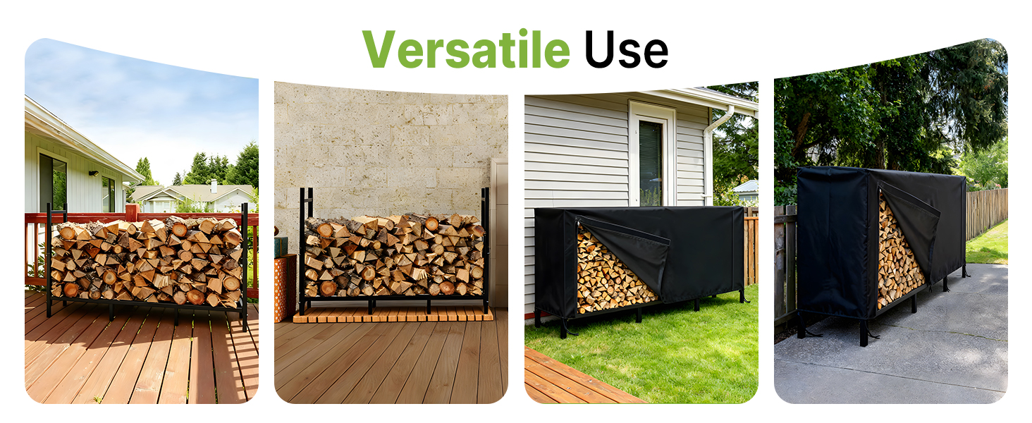 Versatile Indoor & Outdoor Use: Whether placed by your indoor fireplace for cozy nights or in your garden, patio, or backyard for outdoor gatherings, this versatile firewood rack seamlessly blends functionality with a sleek design to complement any space