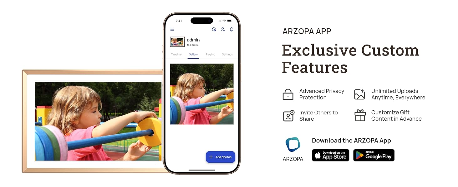 - MULTI-USER INSTANT SHARING: Invite family and friends share life via the free Arzopa app, "like" and "comment" on your shared moments, enjoy a private shared space. Stay connected globally with 30+ language, creating joyful interactions across distances.