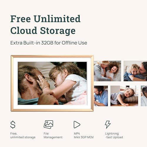 - 100% FREE UNLIMITED CLOUD STORAGE: Upload photos & videos to your electronic photo frame with no subscription required. Enjoy cloud convenience without SD cards – add memories anytime anywhere from phone to frame, even when it is offline (auto-syncs when reconnected).