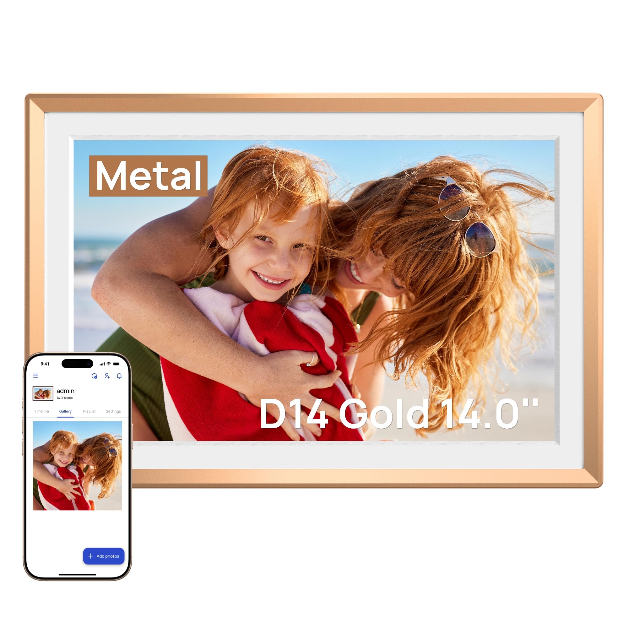 ARZOPA 14 Inch Metal Digital Photo Frame Free Cloud Storage Share Unlimited Photos & Videos No Subscription Fees WiFi Digital Picture Frame 1920*1200 FHD Touchscreen Best Custom Frame for Gifting-D14