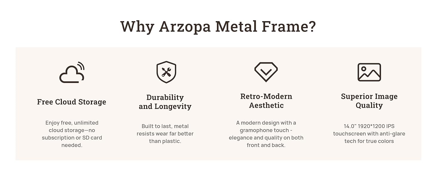 ARZOPA 14 Inch Metal Digital Photo Frame Free Cloud Storage