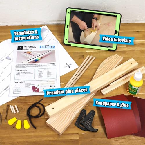 Ash & Co. Workshops Beginners Woodwork Project Kit – Build a Toy Crossbow, FSC Sustainable Pine Wood, Complete DIY Kit with Video Tutorials