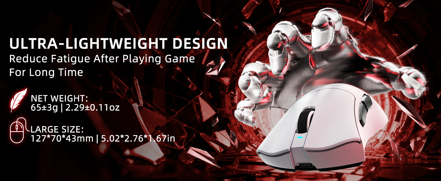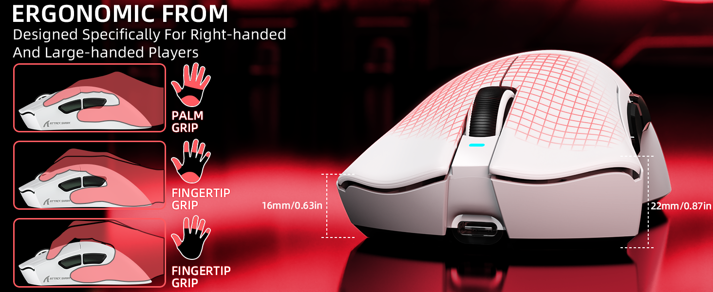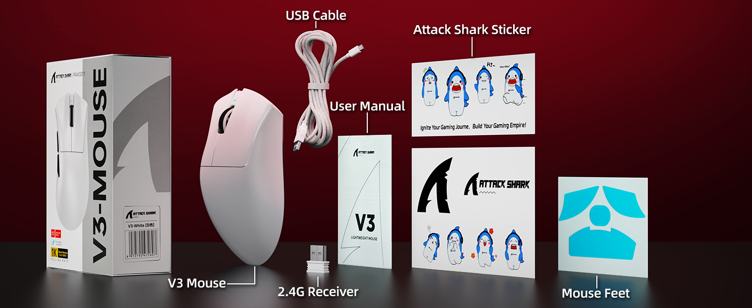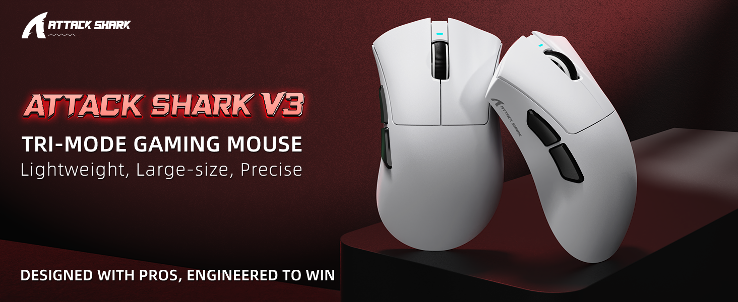 - ULTRA-LIGHT AND LARGE DESIGN: The ATTACK SHARK V3 high-speed wireless mouse has been redesigned, weighing less than 68g, with a minimalist, large design that delivers faster, more precise movement while maintaining its exceptional ergonomic form factor shape. PTFE feet ensure smooth and stable gliding, which is crucial for competitive gaming.