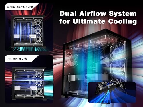 - [Powerful Airflow Cooling]K09 PC Case utilizes a dual-channel airflow design—horizontal for CPU, vertical for GPU—to deliver focused and efficient cooling. with the top serving as the main exhaust, create a vertical airflow design. Both the top and bottom of H09 mid-tower ATX case feature magnetic dust filters, maintaining cooling performance while minimizing internal dust accumulation.