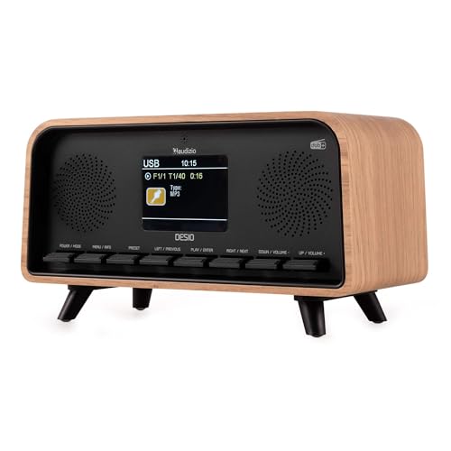 Audizio Desio Retro DAB+ Digital Radio with Bluetooth, FM, USB, 50 Presets, Stereo Speakers, Large 2.4-Inch Colour Display, Vintage Light Wood, Home Audio, Easy Controls