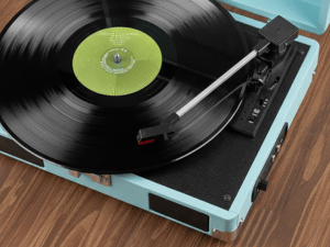A full-range stereo speaker system is built into the record player – no external system required to enjoy playback instantly.
