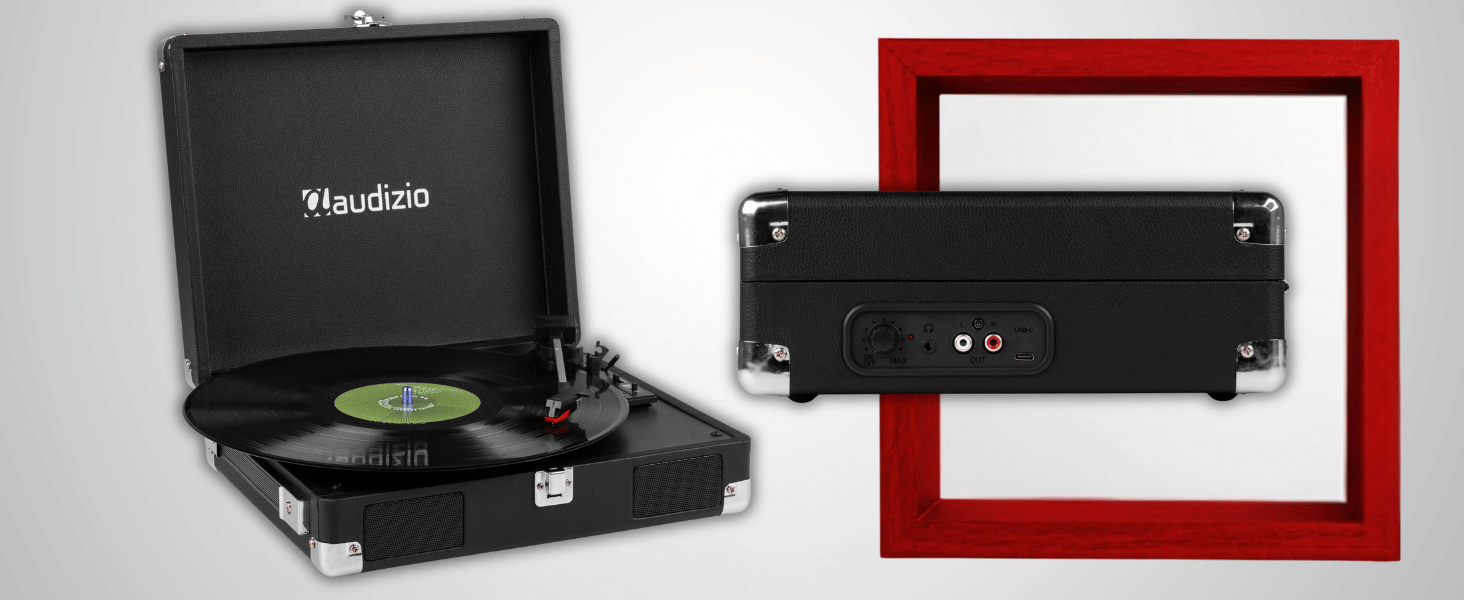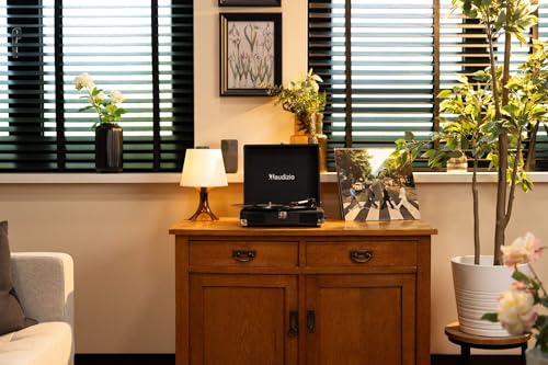 - Classic design meets modern function: the sturdy wooden cabinet with black PU leather finish and secure carry handle makes it ideal for home audio use or stylish on-the-go listening.