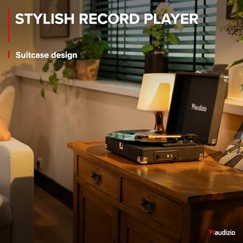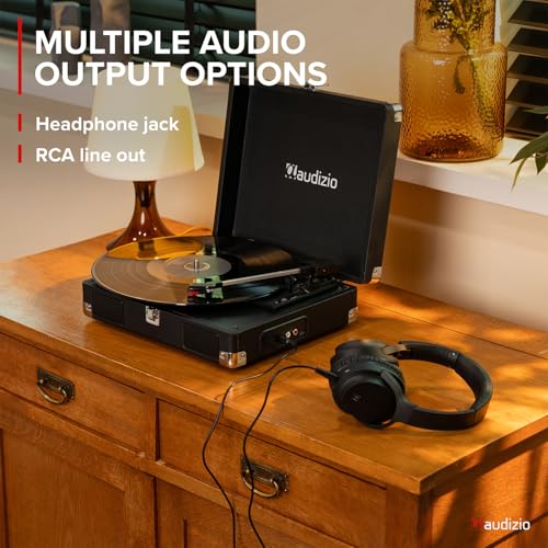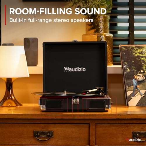 Audizio RP111BK Briefcase Record Player with Built-in Stereo Speakers, Portable Retro Vinyl Turntable, 3 Speed, PU Leather, RCA Line Out, Headphone Jack, Black Finish, Home Audio Playe