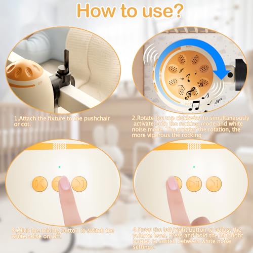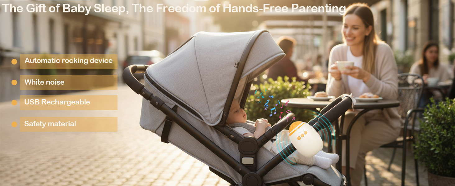 Auto Baby Rocker with White Noise Machine – Adjustable Baby Bouncer for Crib & Stroller, 11 Soothing Sounds, USB Fast Charging, Hands-Free Newborn Essentials