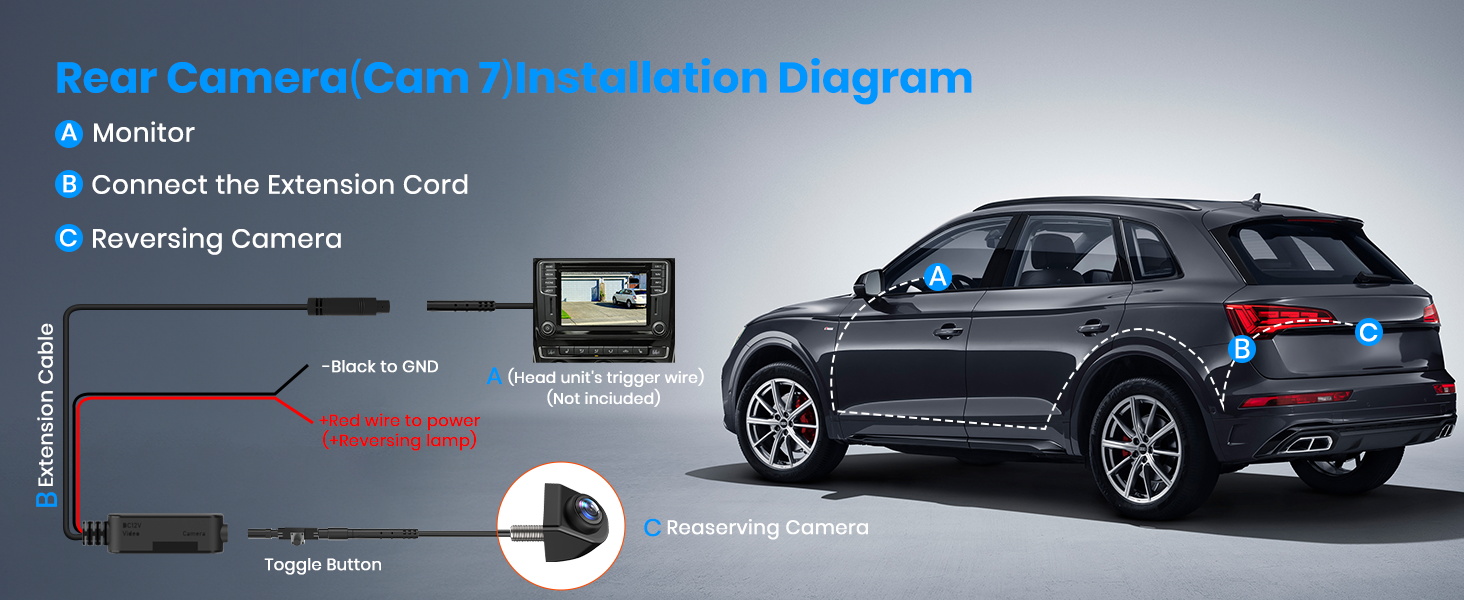 - Easily switch between 6 video signal modes: CVBS (NTSC), AHD 1080P (NTSC), AHD 720P (NTSC),AHD 720P (PAL), AHD 1080P (PAL), CVBS (PAL)—with a single button. The system cycles through the formats in this fixed order. If no image appears, press the control button once every 3 seconds until the screen responds. For first-time setup, it’s normal if the image appears incomplete due to vehicle compatibility. This reversing camera upgrade ensures wide compatibility with most factory-fitted head unit—ideal for drivers upgrading their system