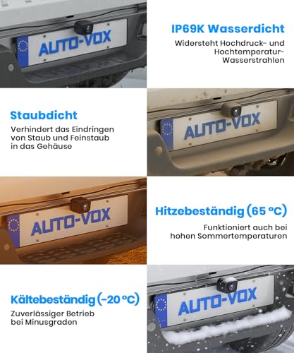 - IP69K waterproof and weatherproof: with protection class IP69K, the wireless rear view camera for car remains reliably in use in rain, snow or high pressure washing – for year-round use