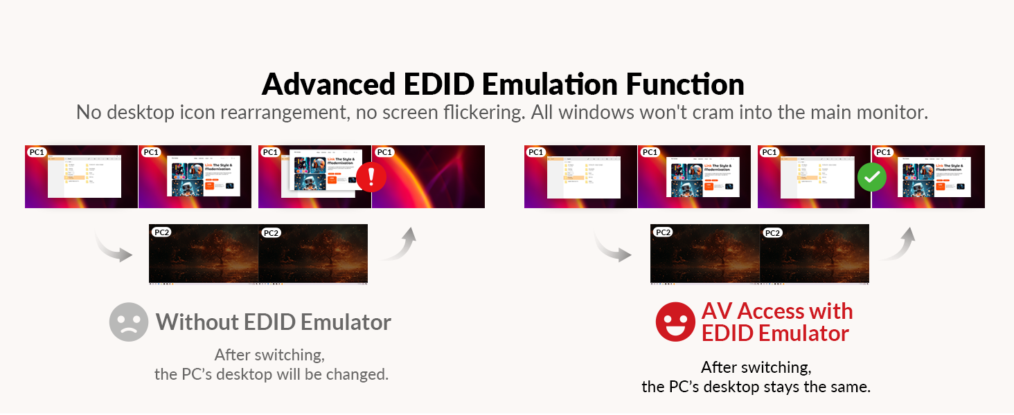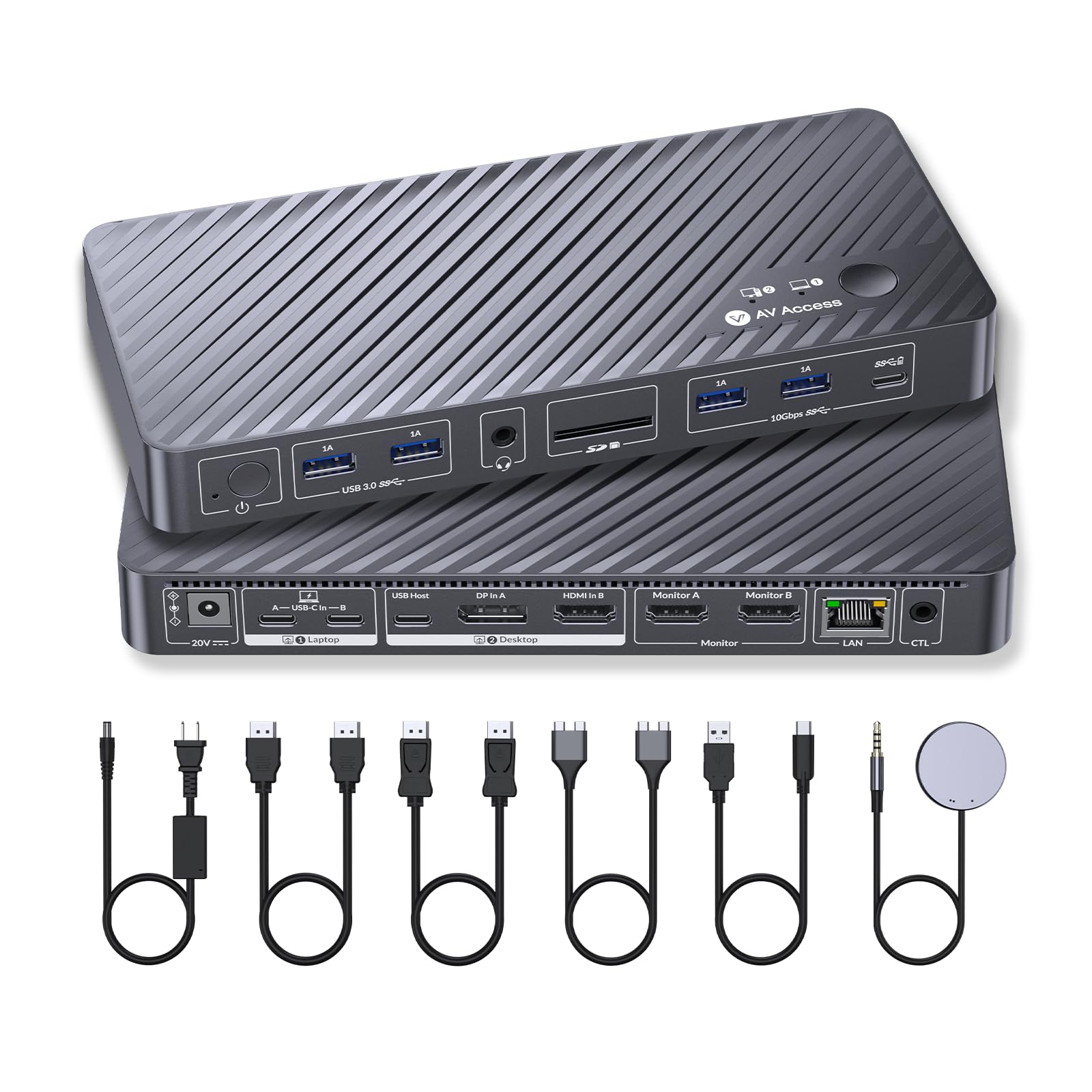 AV Access KVM Switch Docking Station for MacBook, USB-C KVM Switch 2 Monitors 2 Computers, 4K Dual HDMI Displays, 1 Laptop + 1 Desktop Switching, Ethernet, 100W Power Delivery, Edie Emulatio