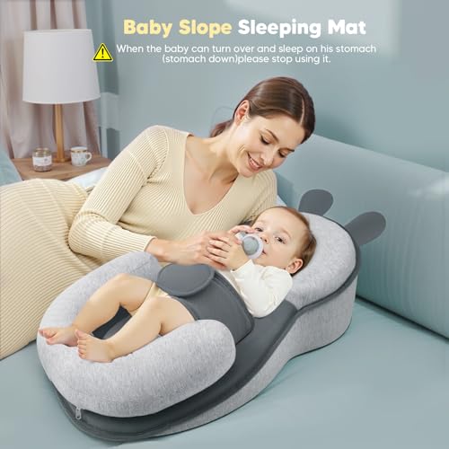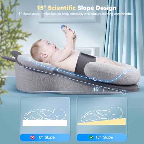 Baby Feeding Support Pillow, Anti Reflux Pillow, Baby Breastfeeding Nursing Pillow for Reflux and Spit-Up Reduction, Bottle Feeding Detachable Lounger for Newborn 0-12 Months