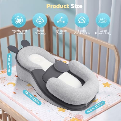 Baby Pillow for Newborn, Baby Lounger Pillow, Acid Reflux Breastfeeding Pillow for Reducing Spit-Up, with Safety Strap