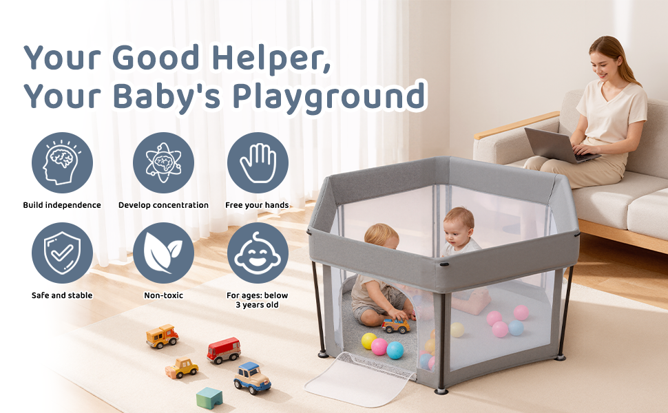 Ideal for indoor or Outdoor Use: Whether at home, outdoors, or visiting family, this playpen for babies and toddlers makes parenting more convenient.