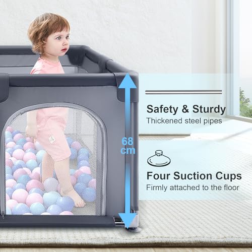 - All-in-One Fun & Safety: More than just a playpen, this is your baby's personal activity center! We include engaging play balls and interactive pull-ring toys to stimulate motor skills and keep your little one entertained for hours, all within a completely secure environment.