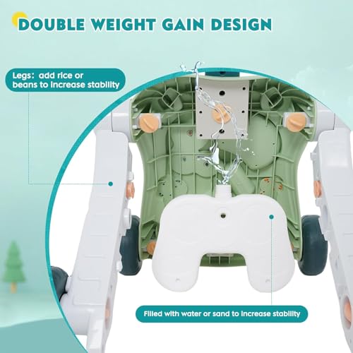 Customizable Weight for Extra Stability:Need more stability? Simply add water, sand, or small weights into the built-in ballast chamber (located in the base and hollow rear legs) to increase the learning walker’s overall weight. This smart feature allows you to tailor the balance and steadiness to your child’s size and confidence level