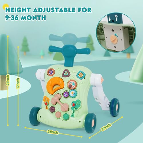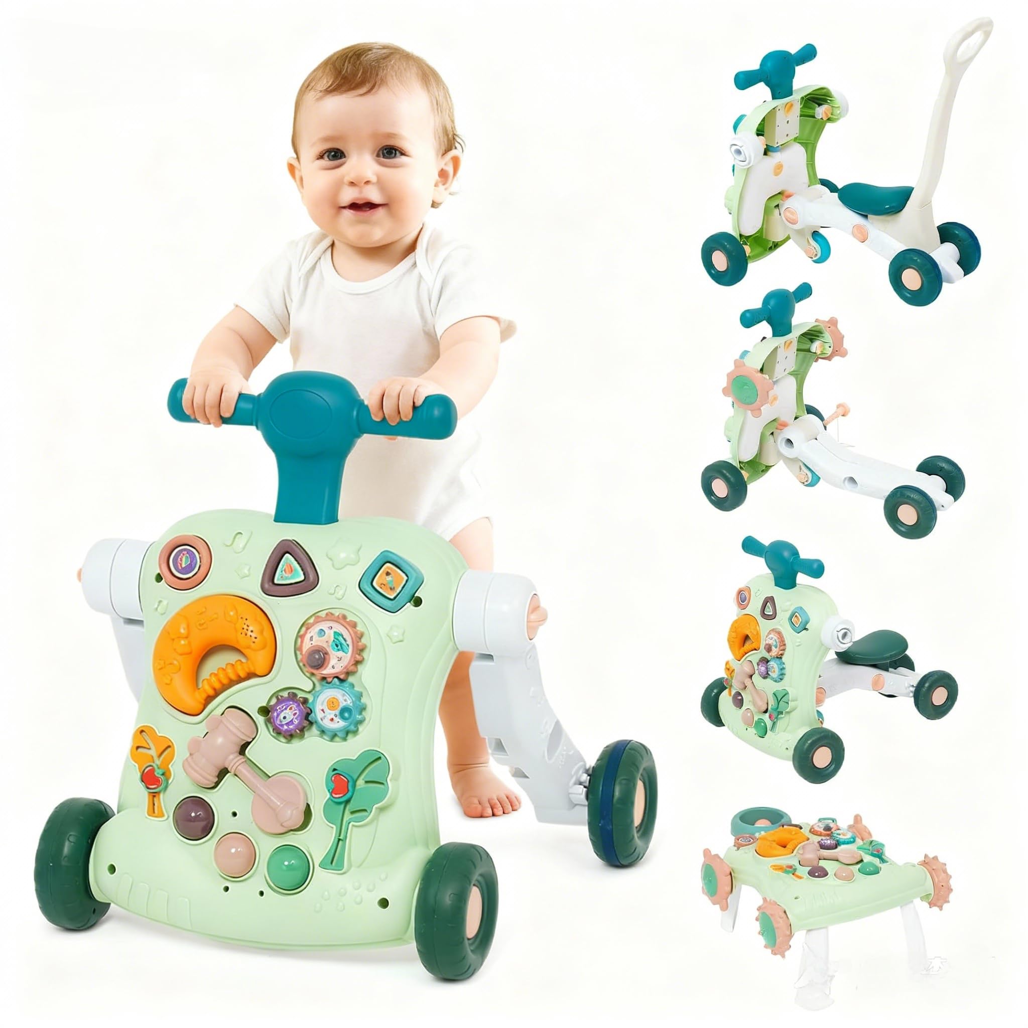 Baby Walker for Toddler 6 in1 with Music,Push Along Activity Walker for Babies with Entertainment Game Panel,Speed Adjustable Sit to Stand Baby Walker,Gifts for Girls and Boy (Green)