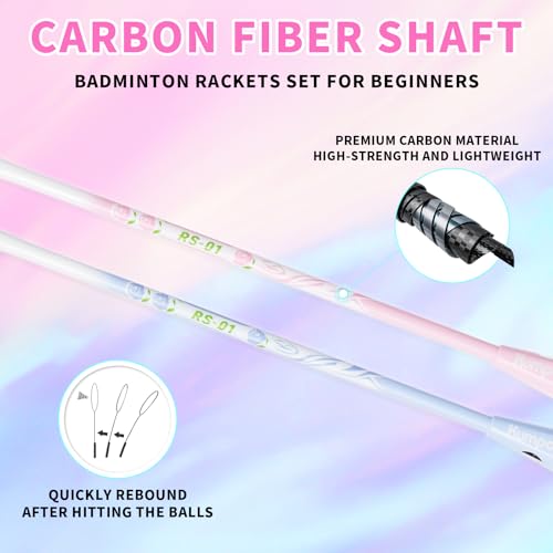 Badminton Racket Set with 2 Carbon Shaft Rackets, 3 Shuttlecocks, 2 Overgrips and 1 Racket Bag – 82g Lightweight 4U Badminton Racquets for 2 Players Outdoor Backyards Games Beginners Adults