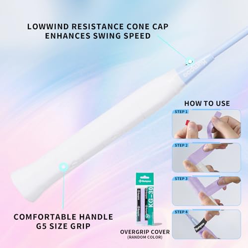 Superior Accessories for Beginners: The nylon badminton shuttlecocks with stability and durability for indoor outdoor games practice training. The comfortable G5 handle size with 2 sweat-absorbent and non-slip overgrips. The included racket carrying bag offers ample space to accommodate all components of your full set of equipment.