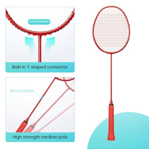 【one-piece molding】The badminton rackets has a sturdy structure, with an integrated design on the outside and a built-in T-shaped joint. The middle pole has moderate hardness and fast resetting speed.