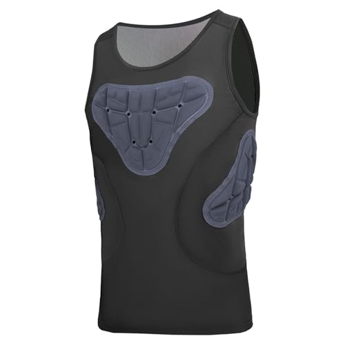 Welcome, Your Great Enjoyment for Living WellDescription: – 【Ergonomic Design】: Men padded chest rib protector vest, 3D sponge bumpers effectively absorb impact, protecting your chest, ribs, and spine during exercise – 【High Stretch 】: Mens baseball chest protector made from quality, flexible , it allows for smooth movement and offers the resilience to withstand repeated impacts during football, rugby, or basketball – 【Comfortable】: The football padded shirt compression vest elastic U shaped neckline is comfortable and comfortable to wear without being constricting. The ergonomic, three dimensional cut contours the body without bulk or slipping, making it lightweight and easy to move – 【Breathable and Quick Drying】: The three dimensional, mesh design on both sides of the waist wicks moisture, allowing for quick drying and pilling, keeping you cool during exercise – 【Versatile】: Compression padded vest is suitable for a variety of sports, including basketball, American football, rugby, hockey, baseball, and skateboardingSpecification: – Material: High StretchSize Chart:S: Front Length 61cm/24.02inch, Chest 73cm/28.74inch, Neckline 19cm/7.48inch, Height 165cm-170cm/64.96inch-66.93inch, Weight 110-115kgM: Front Length 63cm/24.8inch, Chest 78cm/30.71inch, Neckline 19.5cm/7.68inch, Height 170cm-175cm/66.93inch-68.90inch, Weight 115-130kgL: Front Length 65cm/25.59inch, Chest 83cm/32.68inch, Neckline 20cm/7.87inch, Height 175cm-180cm/68.90inch-70.87inch, Weight 145-160kgXL: Front Length 67cm/26.38inch, Chest 88cm/34.65inch, Neckline 20.5cm/8.07inch, Height 180cm-185cm/70.87inch-72.83inch, Weight 160-170kg