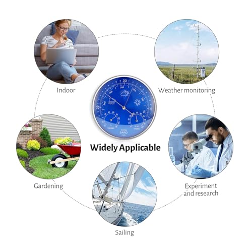 Extra-Large 7-Inch Blue Dial: weather station indoor outdoor featuring an exceptionally large 7.09-inch (180mm) diameter dial with high-contrast black markings on a blue background, this large weather gauges ensures exceptional readability and accurate measurement interpretation from across the room.