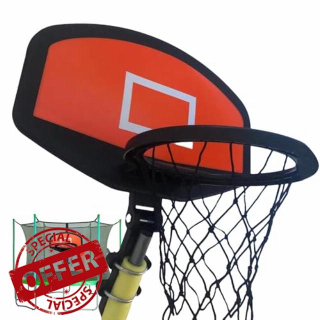 Trampoline Accessories: This trampoline basketball hoop allows you to playing basketball while jumping on your trampoline. It is a trampoline accessory that boosts your throwing skills and gives you more adventure on your trampoline.