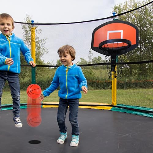 Safe And Reliable: This trampoline basketball hoop is made of durable PE and ABS materials that is strong and wear-resistant. It can withstand the wind and the of the ball without deforming or breaking.