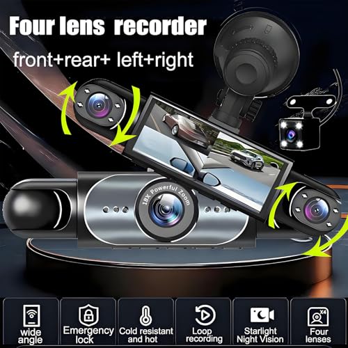 - Comprehensive Coverage: Assure constant video capture through 4-way cameras supported 360-degree monitoring and full-angle blind-spot tracking for uninterrupted road awareness