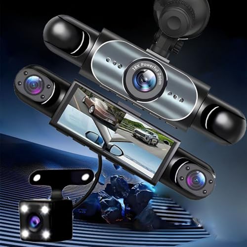 Battery Operated Dash Cam – 4-Channel Recorder With Full 1080P Video, Includes Rear Reversing Camera And Blind Spot Monitoring For Front And Side Views | Ideal For Night Driving Safety