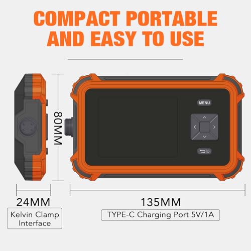 - Professional Battery Resistance Tester: Utilize true 4-wire Kelvin measurement (0.1mΩ resolution) to accurately diagnose internal resistance (10mΩ-10Ω range) and voltage simultaneously