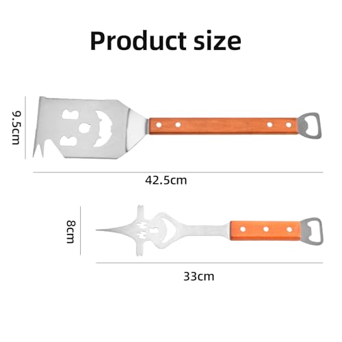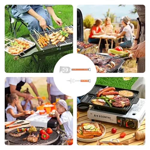 - 【Multifunctional BBQ Tools】The BBQ tools combine multiple functions, including a spatula, knife, fork, bottle opener, and skewer-assisting tool, making it a comprehensive and portable solution for grilling needs.