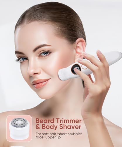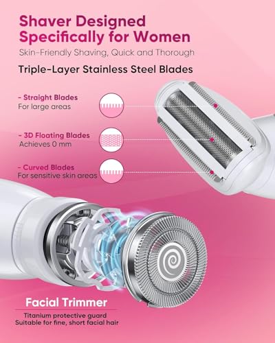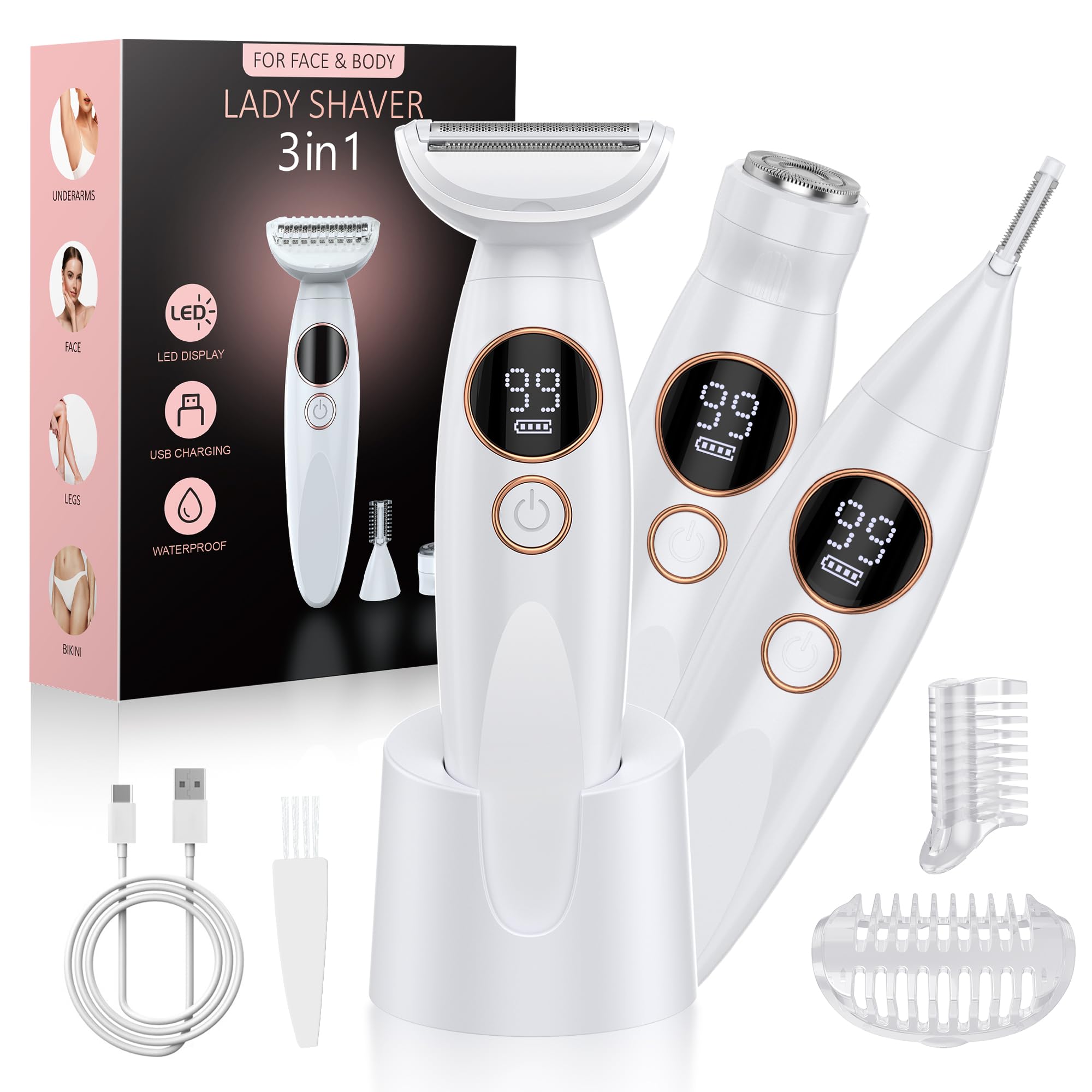 Bikini Trimmer Women, Waterproof 3-in-1 Lady Shavers for Women – Painless Electric Razor for Face, Body, Legs & Underarms with LED Battery Display, 120min Runtime, IPX7 Washable & USB Dock