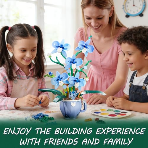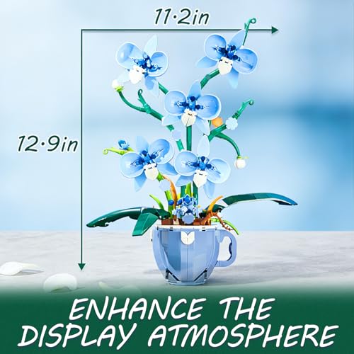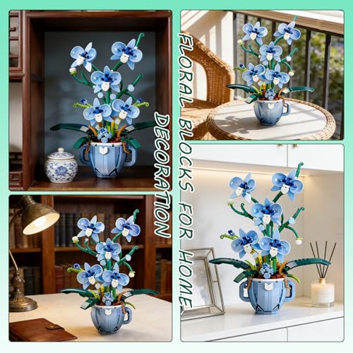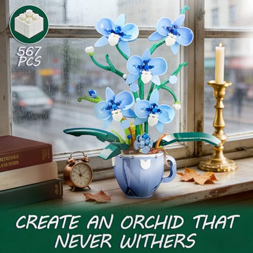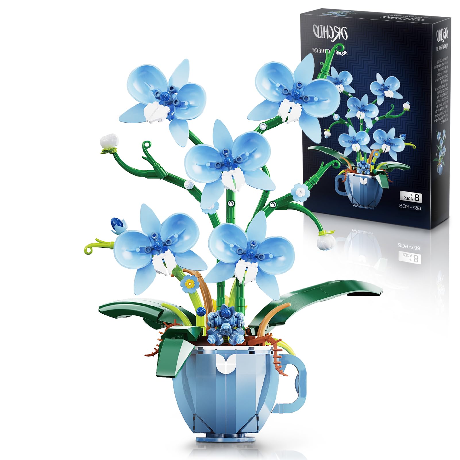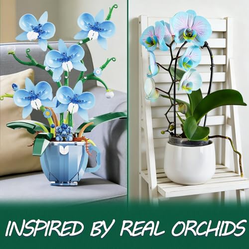 Blue Orchid Flower Building Set with Vase for Adults, Compatible with Lego Botanical Flowers, 567pcs Ideas Plant Collection Toys for Home and Office Decor, Gifts for Christmas Mother's Day