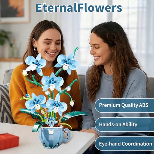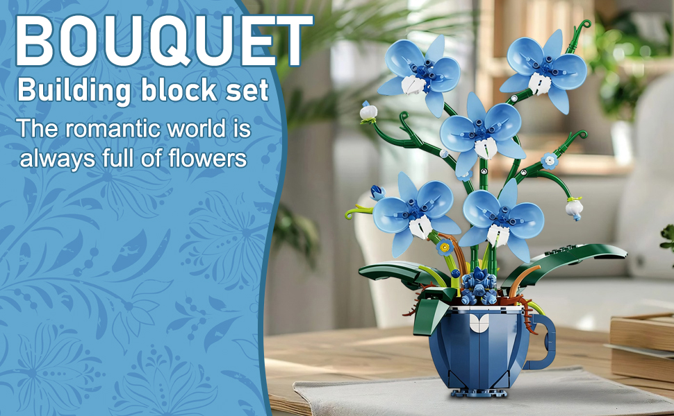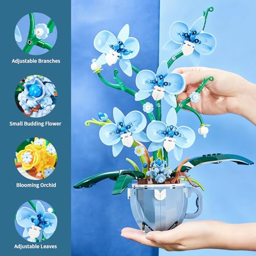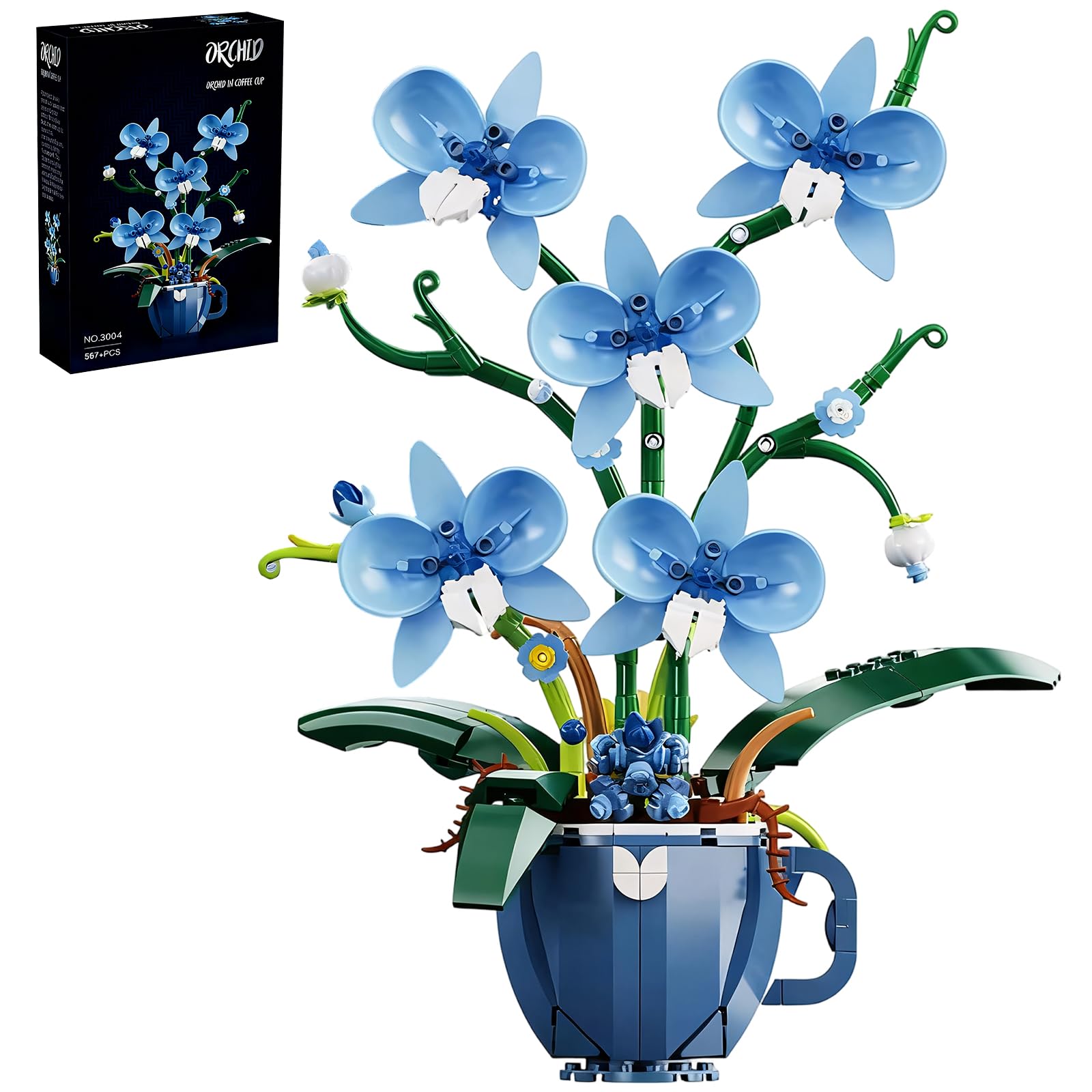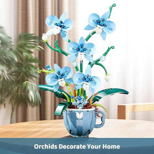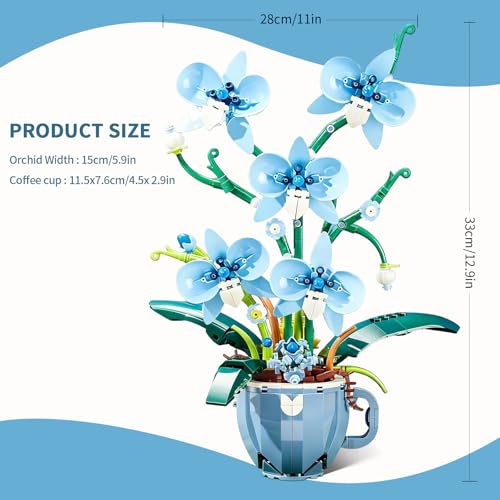 Lifelike Blue Orchid & Coffee Cup Design:This 567-piece building set meticulously replicates the delicate petals, stems, and leaves of a real orchid, paired with a charming coffee cup-themed base for unique decor appeal. Measuring 9.8 x 6.42 x 12.8 inches, it adds a natural, sophisticated touch to living rooms, offices, or bedrooms—no watering or maintenance required