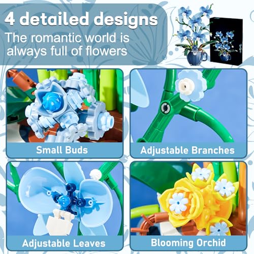 Premium Material for Long-Lasting :BeautyCrafted from high-quality plastic, the blocks are durable, resilient, and resistant to fading or wear. The finished orchid arrangement retains its vibrant blue hue and intact structure over time, serving as a timeless decorative piece for your space