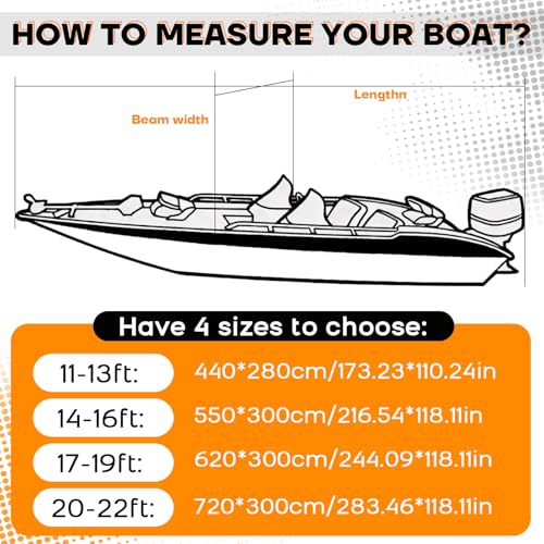Universal boat cover: suitable for yachts and boats. Simply choose the right size: 20-22 ft (largeur de bateau de 720 x 300 mm) and you are ready to protect your watercraft. Please refer to the size in the description and you need to measure your boat first to choose the right size.
